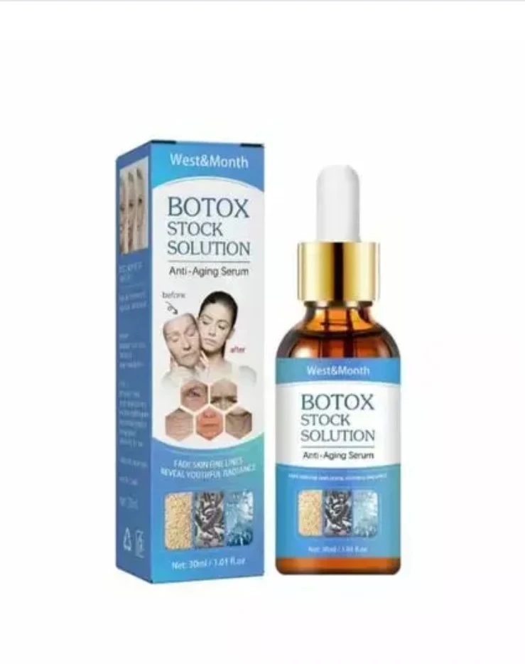 Botox Stock Solution Facial Serum ni serum ya uso iliyoundwa kutumika kama sehemu ya utunzaji wa ngozi kwa kusudio la kuonekana kuboresha muonekano wa ngozi kwa kupunguza mwonekano wa mikunjo na kuifanya ngozi ionekane imara zaidi. Ingawa jina linatumika “Botox”, mara nyingi bidhaa hizi sio sindano ya botox ya kitabibu, bali ni serum yenye viambato vinavyolenga kutuliza muonekano wa mikunjo kwa nje.