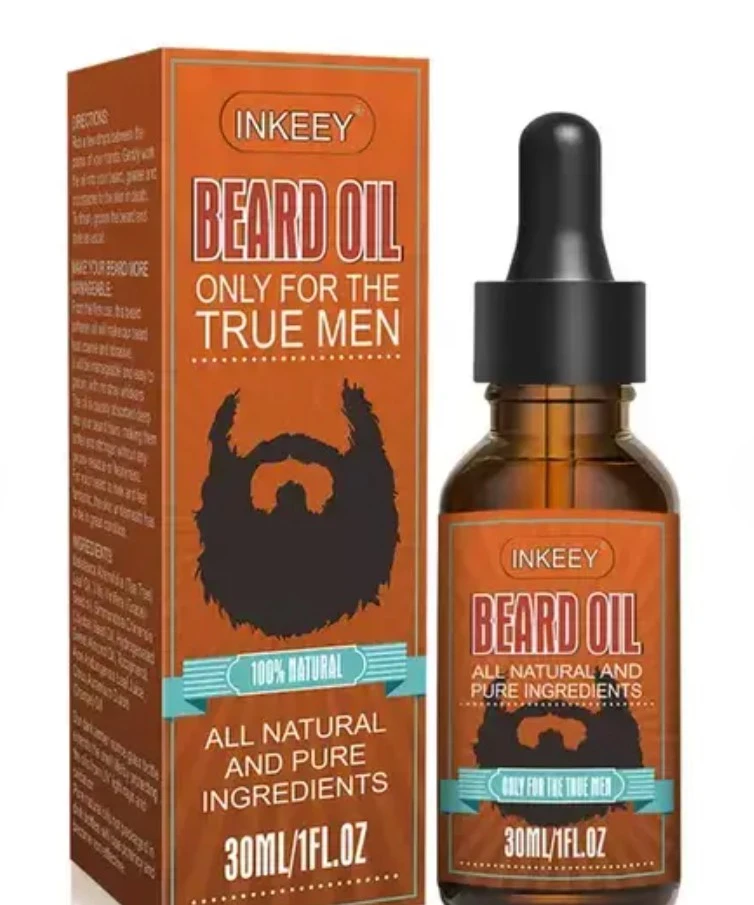 INKEEY Beard Growth Oil 30ml ni mafuta maalum ya utunzaji wa nywele za sura (beard) iliyoundwa kusaidia kufanya nywele za mashavu/vipu vya uso zikue laini, zenye afya na kuonekana vizuri zaidi kwa matumizi ya kila siku. Ni bidhaa ya kutunza nywele ya mashavu zaidi kuliko dawa ya matibabu.